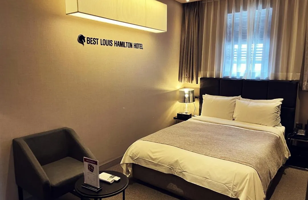 Oferecendo restaurante e depósito de bagagem, o Best Louis Hamilton Hotel Haeundae confortável situa-se no bairro de entretenimento, a aproximadamente 10 minutos a pé do Parque Ribeirinho de Millak e a cerca de 7 km da Salão do Memorial da Paz das Nações Unidas. Este hotel estiloso de 3 estrelas fornece receção 24 horas e check-out tarde.